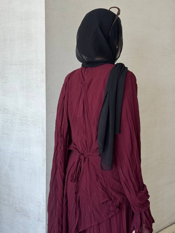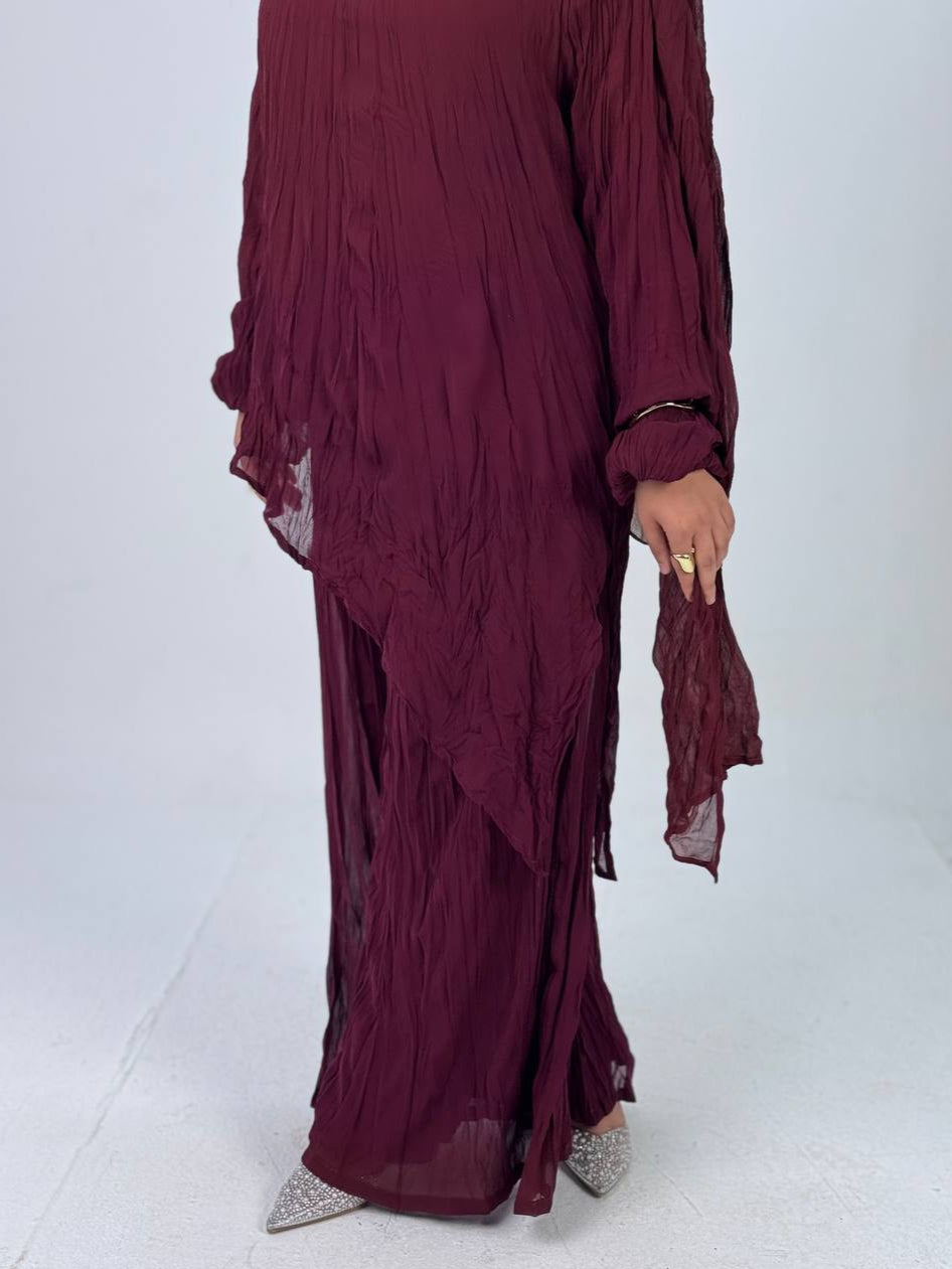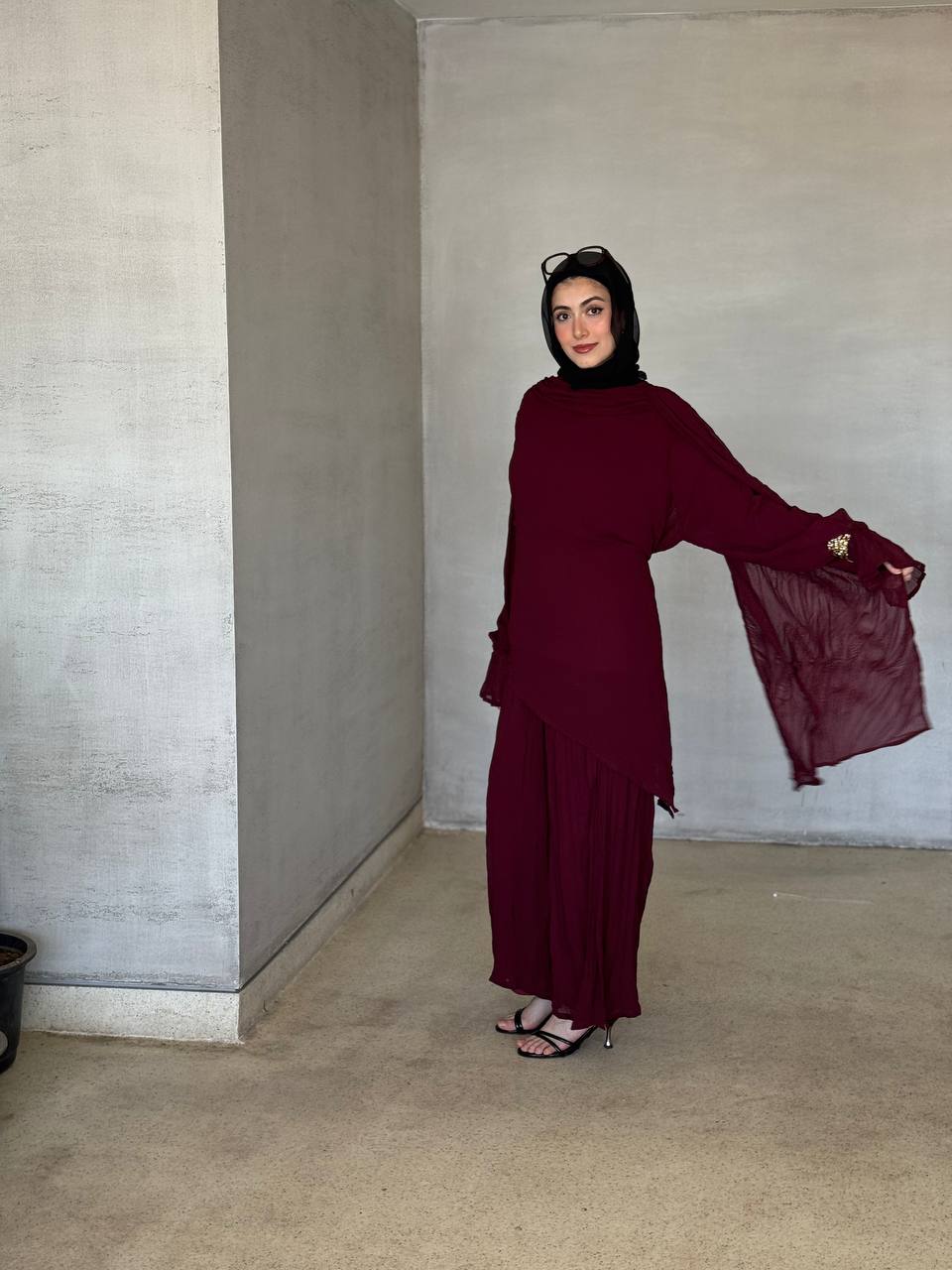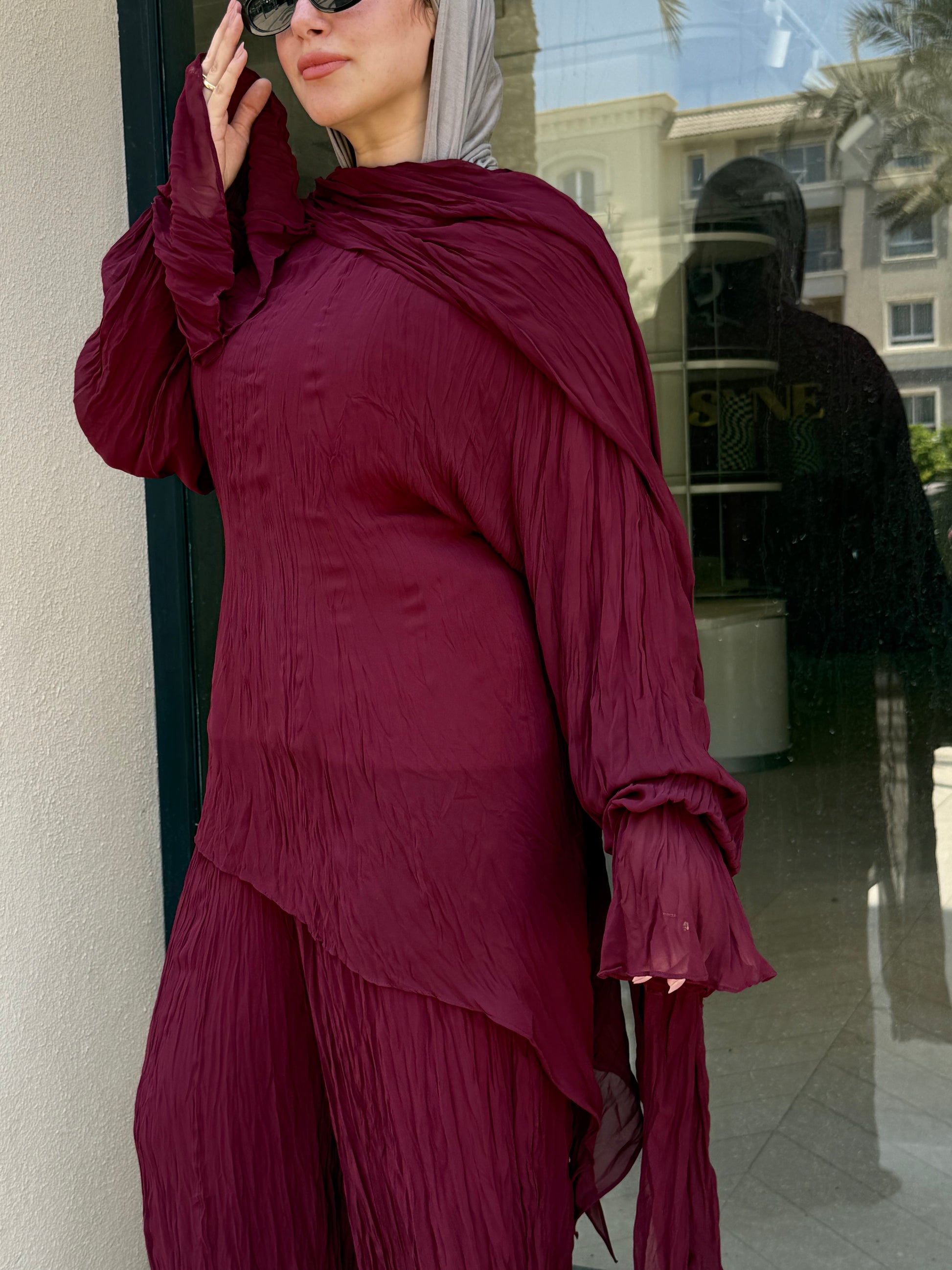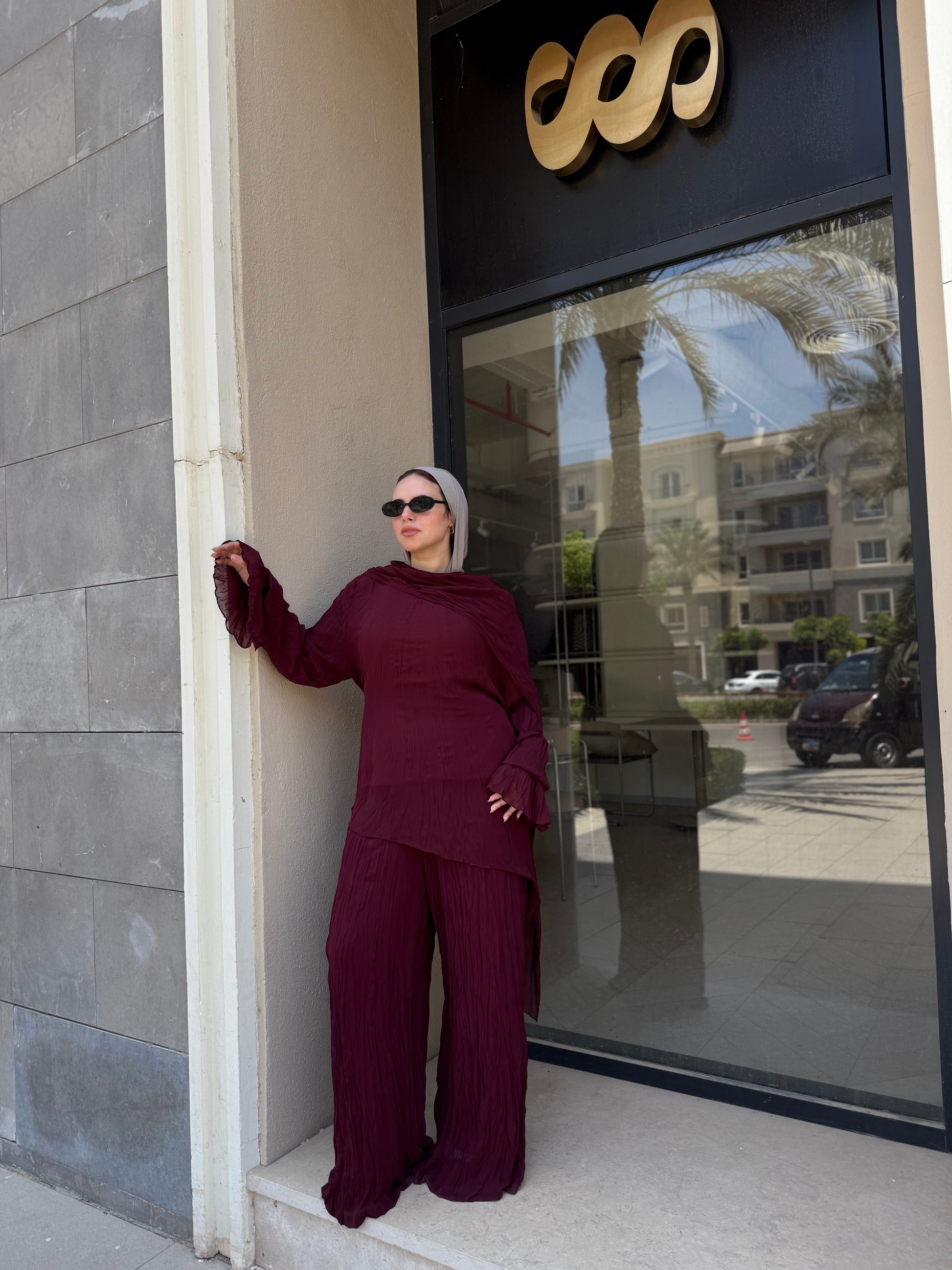 This two piece burgundy set is tailored with a soft belt and smooth lining, giving you shape without restriction Designed to fit your life whether it’s a quiet coffee or a special night out