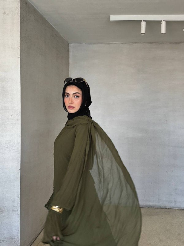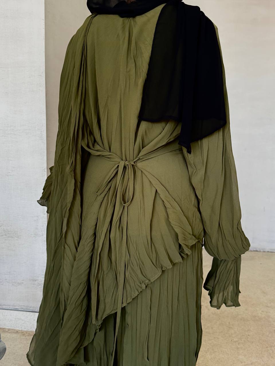 Same graceful design, now in olive green. Flowy, lightweight, and modest this set blends ease with elegance in the best way