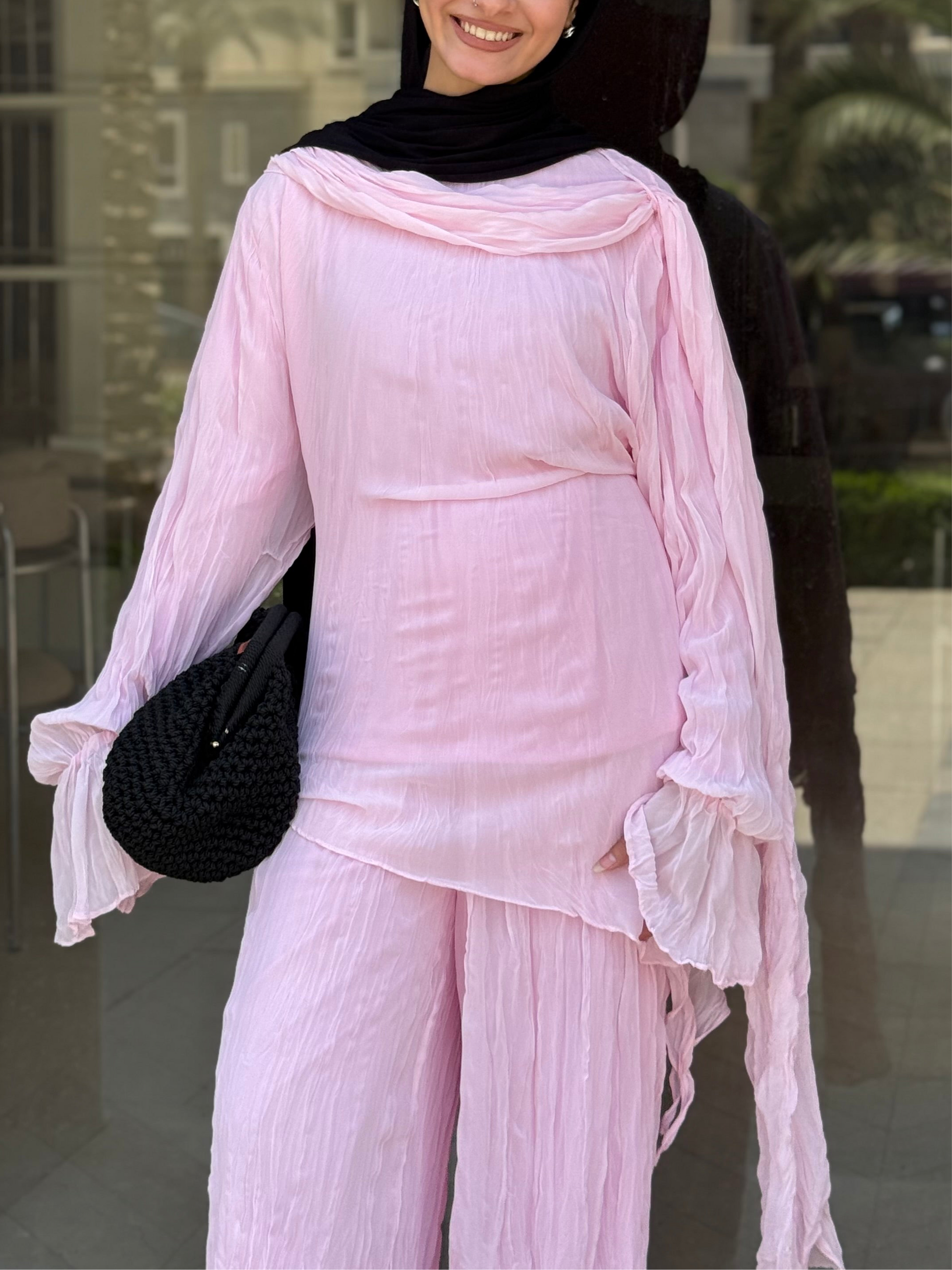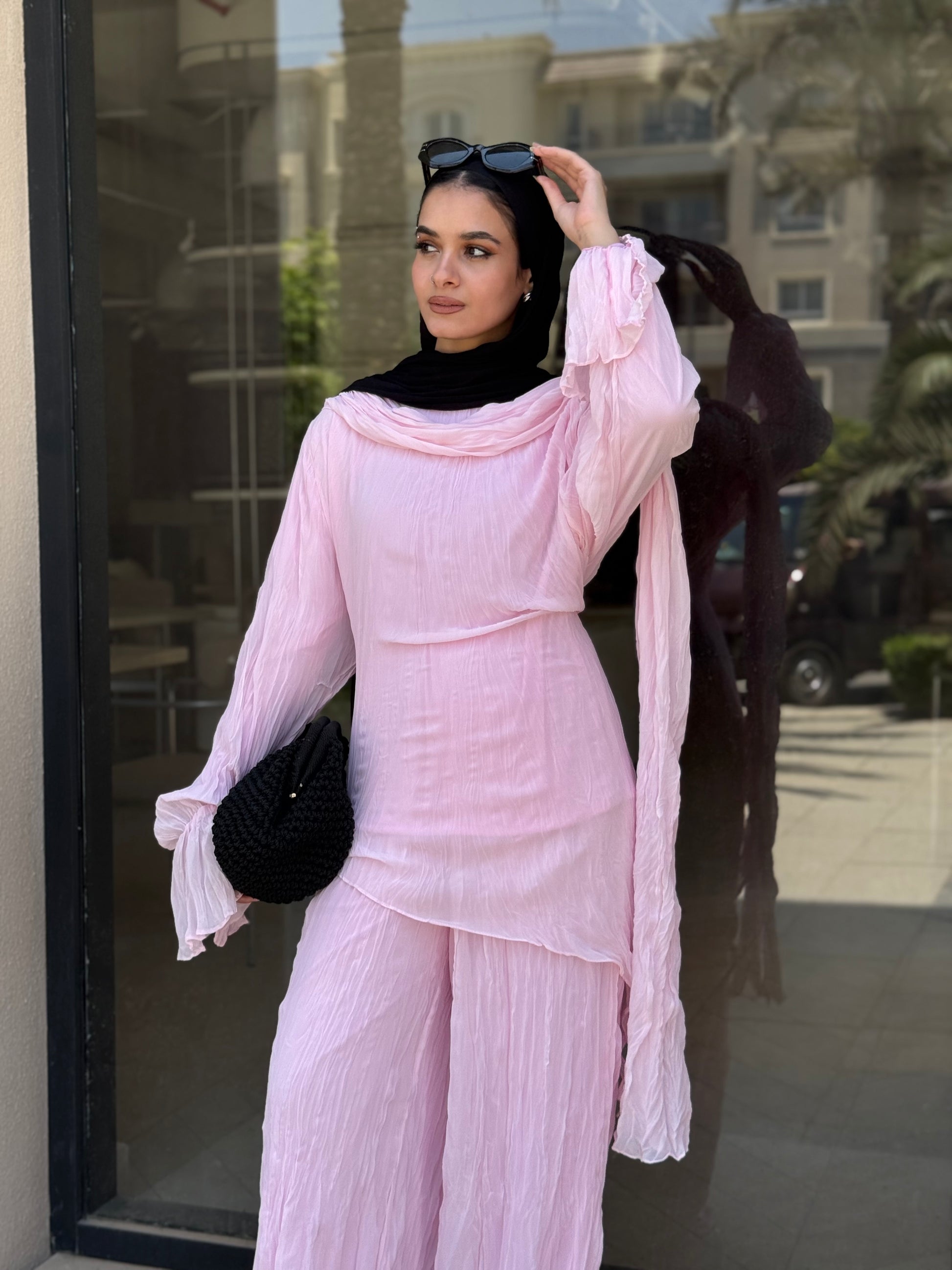 Discover the soft charm of The Effortless Set in Baby Pink – a subtle, romantic hue that adds a graceful touch to your everyday look. Light yet rich, this shade brings a fresh sense of calm and confidence, making it a modest wardrobe essential💗